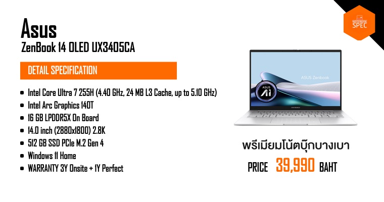 #Unbox #ASUS #Zenbook14 ได้ซีพียูใหม่ ราคา 39,990 บาท จอ OLED มีปากกาด้วยMar 23, 2025 -
