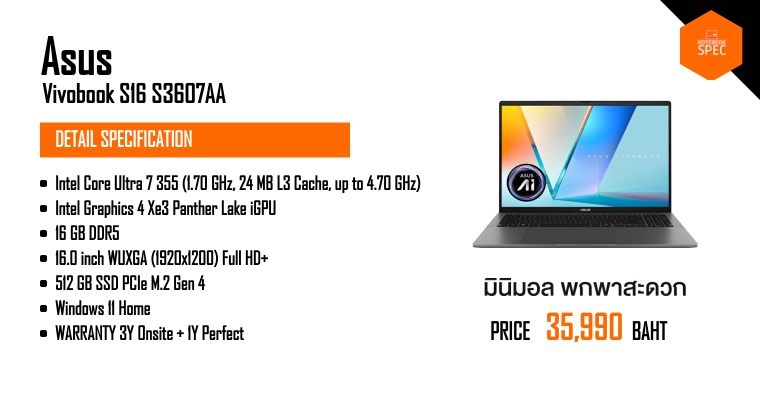 อัพสเปคใหม่ แบตถึก ราคาน่าโดน | ASUS Vivobook S16Aug 29, 2025 -