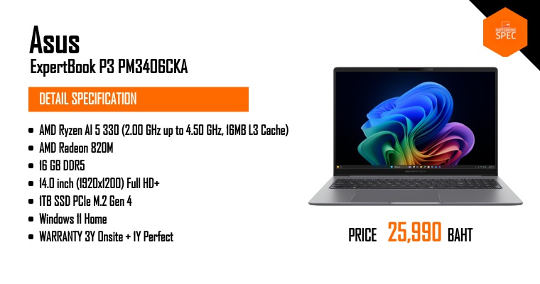 โน้ตบุ๊คทำงาน คุ้มค่าน่าโดน แรม 16GB เริ่มแค่ 14,000 บาท ASUS ExpertBook P1Nov 23, 2025 -
