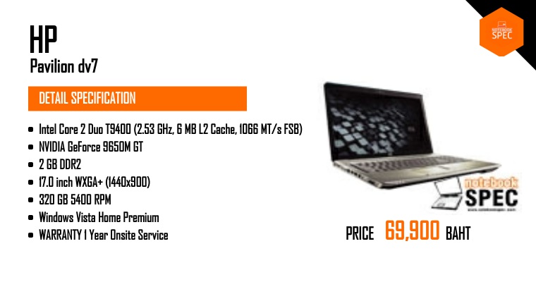 HP Pavilion dv7-1007TX [Entertainment Notebook สุดแรงจาก HP]Oct 17, 2008