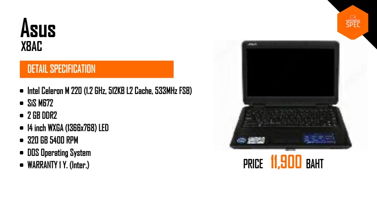 หมายเหตุ ข้อมูลที่แสดงในหน้านี้อาจไม่ครอบคลุมทุกส่วนที่มีภายในตัวเครื่อง ซึ่งทางเว็บไซต์สามารถทำการเปลี่ยนแปลงแก้ไขข้อมูลได้ โดยไม่ต้องแจ้งให้ทราบล่วงหน้า ผู้อ่านควรศึกษาข้อมูลเพิ่มเติมจากเว็บไซต์ผู้ผลิตสินค้า และควรสอบถามข้อมูลเพิ่มเติม จากผู้ขายสินค้า ณ จุดวางจำหน่ายทุกครั้ง เพื่อความถูกต้อง หากพบว่าข้อมูลรายละเอียดที่เราแสดงในหน้านี้มีความผิดพลาดหรือพบปัญหาในการแสดงผลของเว็บไซต์ โปรดแจ้งให้เราทราบได้ที่ feedback@notebookspec.com