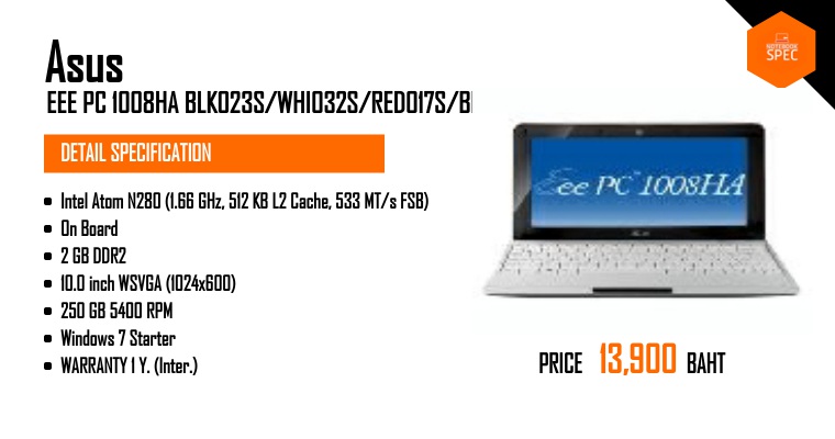 ASUS EEE PC 1008HA [ความบางเหนือระดับ กับพลังงานที่เหลือล้น]Nov 23, 2009 -