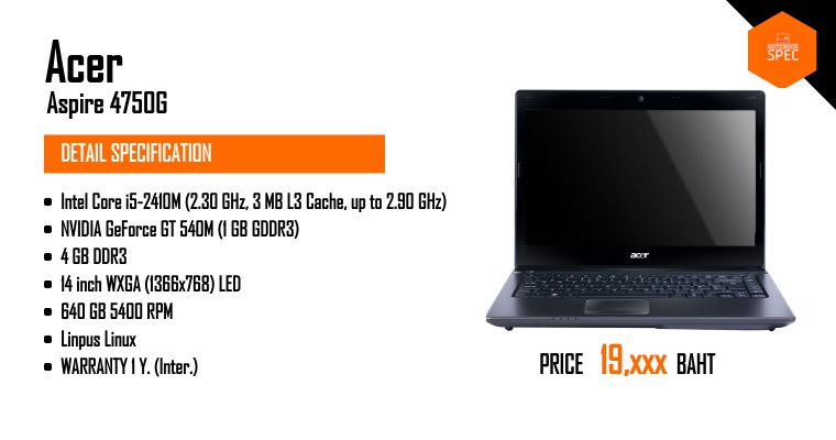 หมายเหตุ ข้อมูลที่แสดงในหน้านี้อาจไม่ครอบคลุมทุกส่วนที่มีภายในตัวเครื่อง ซึ่งทางเว็บไซต์สามารถทำการเปลี่ยนแปลงแก้ไขข้อมูลได้ โดยไม่ต้องแจ้งให้ทราบล่วงหน้า ผู้อ่านควรศึกษาข้อมูลเพิ่มเติมจากเว็บไซต์ผู้ผลิตสินค้า และควรสอบถามข้อมูลเพิ่มเติม จากผู้ขายสินค้า ณ จุดวางจำหน่ายทุกครั้ง เพื่อความถูกต้อง หากพบว่าข้อมูลรายละเอียดที่เราแสดงในหน้านี้มีความผิดพลาดหรือพบปัญหาในการแสดงผลของเว็บไซต์ โปรดแจ้งให้เราทราบได้ที่ feedback@notebookspec.com