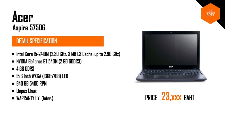 หมายเหตุ ข้อมูลที่แสดงในหน้านี้อาจไม่ครอบคลุมทุกส่วนที่มีภายในตัวเครื่อง ซึ่งทางเว็บไซต์สามารถทำการเปลี่ยนแปลงแก้ไขข้อมูลได้ โดยไม่ต้องแจ้งให้ทราบล่วงหน้า ผู้อ่านควรศึกษาข้อมูลเพิ่มเติมจากเว็บไซต์ผู้ผลิตสินค้า และควรสอบถามข้อมูลเพิ่มเติม จากผู้ขายสินค้า ณ จุดวางจำหน่ายทุกครั้ง เพื่อความถูกต้อง หากพบว่าข้อมูลรายละเอียดที่เราแสดงในหน้านี้มีความผิดพลาดหรือพบปัญหาในการแสดงผลของเว็บไซต์ โปรดแจ้งให้เราทราบได้ที่ feedback@notebookspec.com