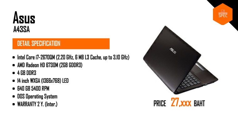 หมายเหตุ ข้อมูลที่แสดงในหน้านี้อาจไม่ครอบคลุมทุกส่วนที่มีภายในตัวเครื่อง ซึ่งทางเว็บไซต์สามารถทำการเปลี่ยนแปลงแก้ไขข้อมูลได้ โดยไม่ต้องแจ้งให้ทราบล่วงหน้า ผู้อ่านควรศึกษาข้อมูลเพิ่มเติมจากเว็บไซต์ผู้ผลิตสินค้า และควรสอบถามข้อมูลเพิ่มเติม จากผู้ขายสินค้า ณ จุดวางจำหน่ายทุกครั้ง เพื่อความถูกต้อง หากพบว่าข้อมูลรายละเอียดที่เราแสดงในหน้านี้มีความผิดพลาดหรือพบปัญหาในการแสดงผลของเว็บไซต์ โปรดแจ้งให้เราทราบได้ที่ feedback@notebookspec.com