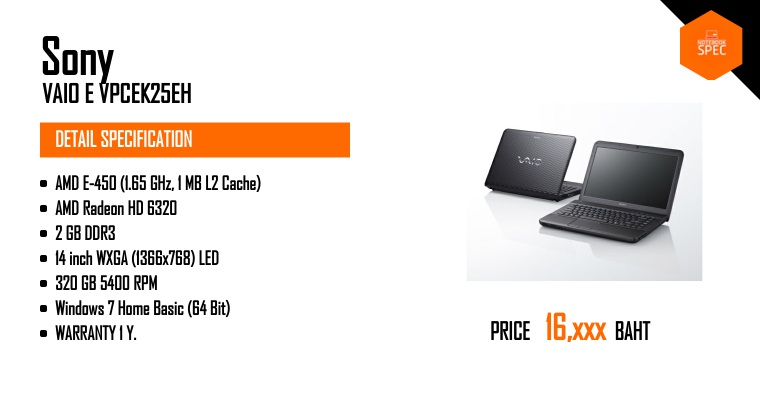 Sony ออกโน๊ตบุ๊ค Vaio ตระกูล E รุ่นใหม่ ขนาดหน้าจอ 11.6 นิ้ว มาพร้อมชิป AMD Brazos 2.0Jun 25, 2012 -