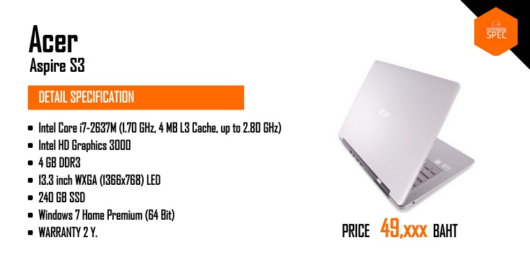 หมายเหตุ ข้อมูลที่แสดงในหน้านี้อาจไม่ครอบคลุมทุกส่วนที่มีภายในตัวเครื่อง ซึ่งทางเว็บไซต์สามารถทำการเปลี่ยนแปลงแก้ไขข้อมูลได้ โดยไม่ต้องแจ้งให้ทราบล่วงหน้า ผู้อ่านควรศึกษาข้อมูลเพิ่มเติมจากเว็บไซต์ผู้ผลิตสินค้า และควรสอบถามข้อมูลเพิ่มเติม จากผู้ขายสินค้า ณ จุดวางจำหน่ายทุกครั้ง เพื่อความถูกต้อง หากพบว่าข้อมูลรายละเอียดที่เราแสดงในหน้านี้มีความผิดพลาดหรือพบปัญหาในการแสดงผลของเว็บไซต์ โปรดแจ้งให้เราทราบได้ที่ feedback@notebookspec.com