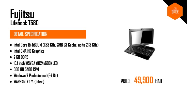 เปิดตัวอย่างเป็นทางการแล้ว สำหรับ Fujitsu LifeBook T580 Tablet PC 10 นิ้วSep 7, 2010