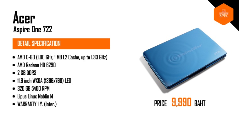 ถูกมากไปมั๊ย :: Acer Aspire One AO722-0828 กับราคาแค่ 9,000 บาทMay 29, 2011 -