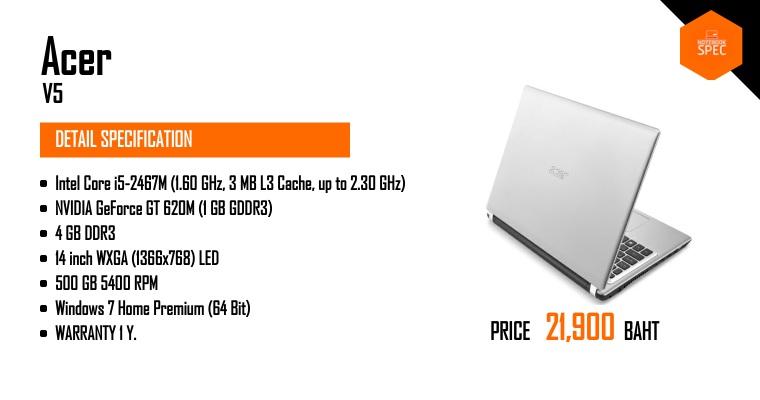 หมายเหตุ ข้อมูลที่แสดงในหน้านี้อาจไม่ครอบคลุมทุกส่วนที่มีภายในตัวเครื่อง ซึ่งทางเว็บไซต์สามารถทำการเปลี่ยนแปลงแก้ไขข้อมูลได้ โดยไม่ต้องแจ้งให้ทราบล่วงหน้า ผู้อ่านควรศึกษาข้อมูลเพิ่มเติมจากเว็บไซต์ผู้ผลิตสินค้า และควรสอบถามข้อมูลเพิ่มเติม จากผู้ขายสินค้า ณ จุดวางจำหน่ายทุกครั้ง เพื่อความถูกต้อง หากพบว่าข้อมูลรายละเอียดที่เราแสดงในหน้านี้มีความผิดพลาดหรือพบปัญหาในการแสดงผลของเว็บไซต์ โปรดแจ้งให้เราทราบได้ที่ feedback@notebookspec.com
