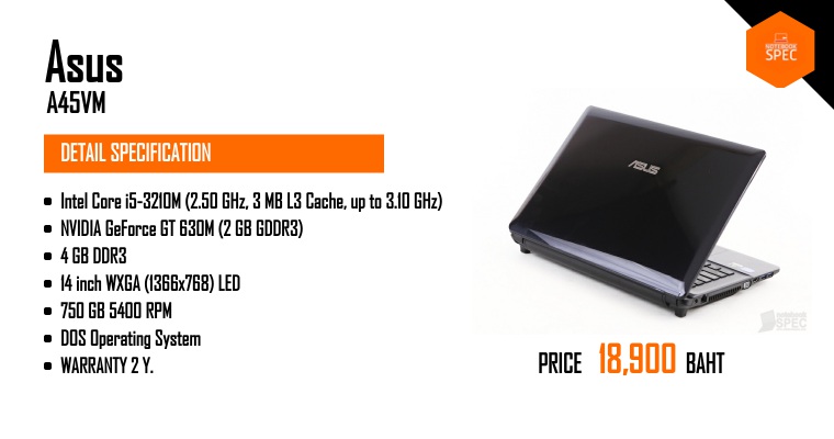 หมายเหตุ ข้อมูลที่แสดงในหน้านี้อาจไม่ครอบคลุมทุกส่วนที่มีภายในตัวเครื่อง ซึ่งทางเว็บไซต์สามารถทำการเปลี่ยนแปลงแก้ไขข้อมูลได้ โดยไม่ต้องแจ้งให้ทราบล่วงหน้า ผู้อ่านควรศึกษาข้อมูลเพิ่มเติมจากเว็บไซต์ผู้ผลิตสินค้า และควรสอบถามข้อมูลเพิ่มเติม จากผู้ขายสินค้า ณ จุดวางจำหน่ายทุกครั้ง เพื่อความถูกต้อง หากพบว่าข้อมูลรายละเอียดที่เราแสดงในหน้านี้มีความผิดพลาดหรือพบปัญหาในการแสดงผลของเว็บไซต์ โปรดแจ้งให้เราทราบได้ที่ feedback@notebookspec.com
