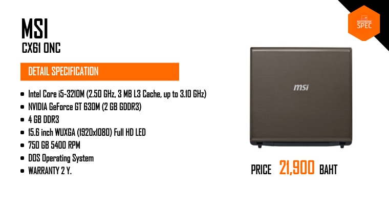 MSI CX61 โน๊ตบุ๊ค i7-MQ 4C/8T พร้อมการ์ดจอแยก 940M ที่คุ้มที่สุดในราคา 21,900 บาทNov 24, 2015 -