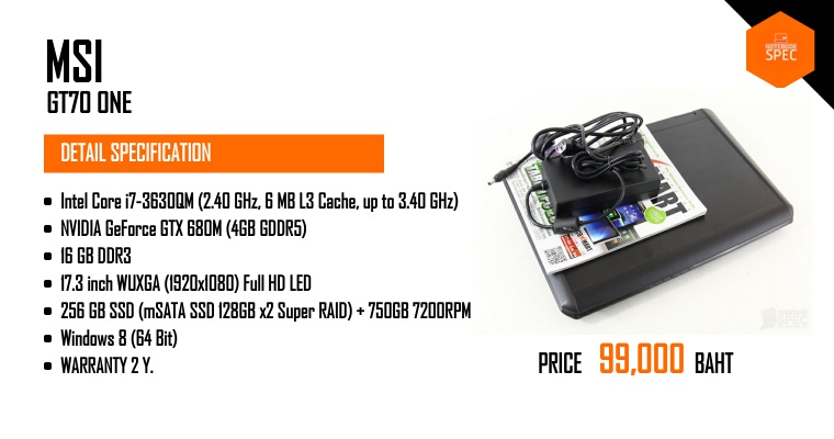 หมายเหตุ ข้อมูลที่แสดงในหน้านี้อาจไม่ครอบคลุมทุกส่วนที่มีภายในตัวเครื่อง ซึ่งทางเว็บไซต์สามารถทำการเปลี่ยนแปลงแก้ไขข้อมูลได้ โดยไม่ต้องแจ้งให้ทราบล่วงหน้า ผู้อ่านควรศึกษาข้อมูลเพิ่มเติมจากเว็บไซต์ผู้ผลิตสินค้า และควรสอบถามข้อมูลเพิ่มเติม จากผู้ขายสินค้า ณ จุดวางจำหน่ายทุกครั้ง เพื่อความถูกต้อง หากพบว่าข้อมูลรายละเอียดที่เราแสดงในหน้านี้มีความผิดพลาดหรือพบปัญหาในการแสดงผลของเว็บไซต์ โปรดแจ้งให้เราทราบได้ที่ feedback@notebookspec.com