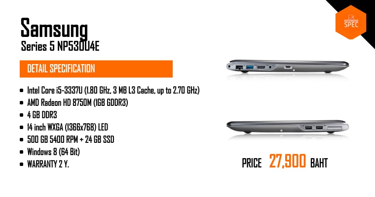 SAMSUNG Series 5 Sleek Notebook หน้าจอ 14 นิ้ว ชิปประมวลผล AMD APU A6Dec 19, 2012 -