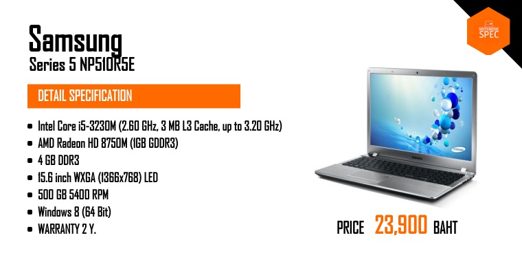 SAMSUNG Series 5 Sleek Notebook หน้าจอ 14 นิ้ว ชิปประมวลผล AMD APU A6Dec 19, 2012 -