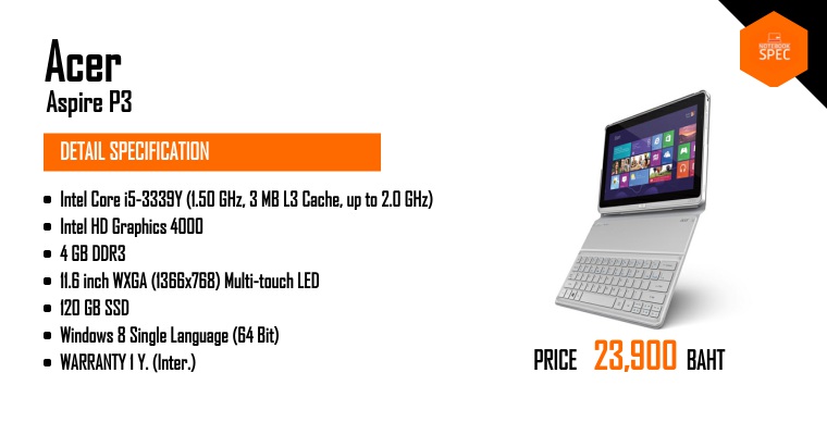 หมายเหตุ ข้อมูลที่แสดงในหน้านี้อาจไม่ครอบคลุมทุกส่วนที่มีภายในตัวเครื่อง ซึ่งทางเว็บไซต์สามารถทำการเปลี่ยนแปลงแก้ไขข้อมูลได้ โดยไม่ต้องแจ้งให้ทราบล่วงหน้า ผู้อ่านควรศึกษาข้อมูลเพิ่มเติมจากเว็บไซต์ผู้ผลิตสินค้า และควรสอบถามข้อมูลเพิ่มเติม จากผู้ขายสินค้า ณ จุดวางจำหน่ายทุกครั้ง เพื่อความถูกต้อง หากพบว่าข้อมูลรายละเอียดที่เราแสดงในหน้านี้มีความผิดพลาดหรือพบปัญหาในการแสดงผลของเว็บไซต์ โปรดแจ้งให้เราทราบได้ที่ feedback@notebookspec.com