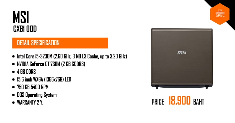 MSI CX61 โน๊ตบุ๊ค i7-MQ 4C/8T พร้อมการ์ดจอแยก 940M ที่คุ้มที่สุดในราคา 21,900 บาทNov 24, 2015 -