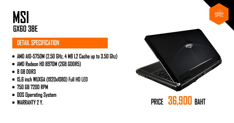 msi เปิดตัว GX60 พกพาซีพียู A10 การ์ดจอ Radeon HD 7970M คาดราคาขายจริงราว ๆ 35,000 บาทApr 1, 2012