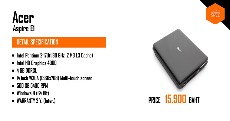 หมายเหตุ ข้อมูลที่แสดงในหน้านี้อาจไม่ครอบคลุมทุกส่วนที่มีภายในตัวเครื่อง ซึ่งทางเว็บไซต์สามารถทำการเปลี่ยนแปลงแก้ไขข้อมูลได้ โดยไม่ต้องแจ้งให้ทราบล่วงหน้า ผู้อ่านควรศึกษาข้อมูลเพิ่มเติมจากเว็บไซต์ผู้ผลิตสินค้า และควรสอบถามข้อมูลเพิ่มเติม จากผู้ขายสินค้า ณ จุดวางจำหน่ายทุกครั้ง เพื่อความถูกต้อง หากพบว่าข้อมูลรายละเอียดที่เราแสดงในหน้านี้มีความผิดพลาดหรือพบปัญหาในการแสดงผลของเว็บไซต์ โปรดแจ้งให้เราทราบได้ที่ feedback@notebookspec.com