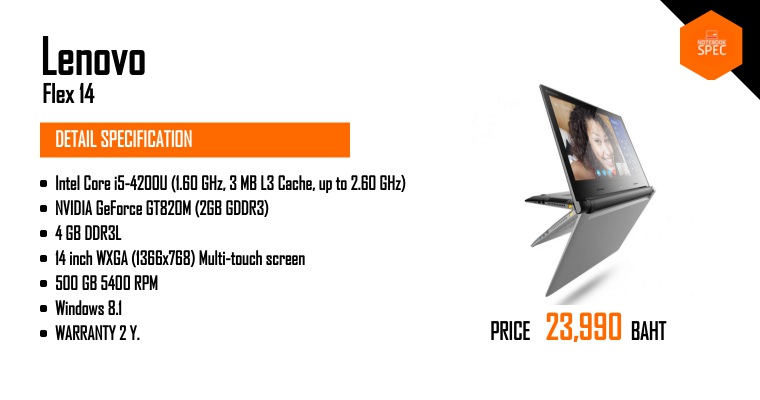 Lenovo เปิดตัว FLEX 2 โน๊ตบุ๊คหมุนจอได้ 300 องศา ใช้ Core i7 และ AMD A8Apr 21, 2014 -