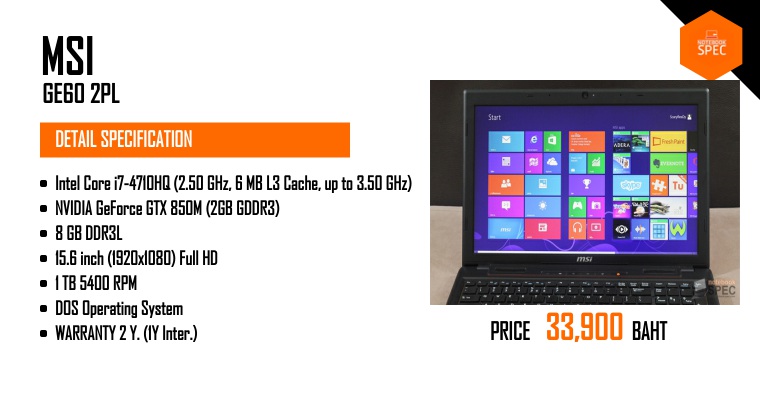 MSI GE60 ตัวท็อป ใช้ Core i7,แรม 8GB และการ์ดจอ GTX860M ลด 6,000 บาทเหลือ 40,900 บาทJan 20, 2015 -