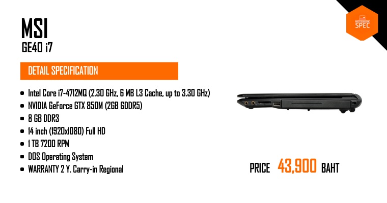 MSI GE40 โน๊ตบุ๊คเกมมิ่งจอ 14 นิ้ว เผยราคาแล้ว เพียง 39,xxx บาทเท่านั้นJun 16, 2013 -