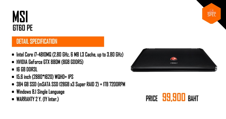 MSI อัพเดท GT60 ใหม่ มาพร้อมหน้าจอความละเอียด WQHD 2880 x 1620 พิกเซลDec 10, 2013 -