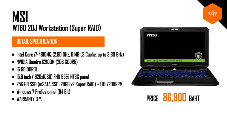 STORAGE256 GB SSD (mSATA SSD 128GB x2 Super RAID) + 1TB 7200RPM