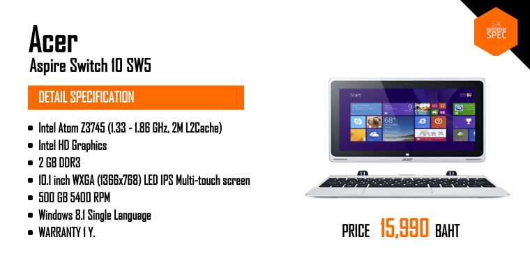 Acer Aspire Switch 11 ลด 10,000 บาท เหลือเพียง 19,900 บาทเท่านั้น ในงาน TME 2015Feb 12, 2015 -
