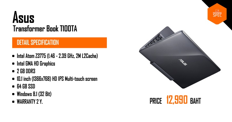 Asus Transformer Book T100HA กับโน๊ตบุ๊ค 2-in-1 ที่มาพร้อม USB Type-C เผยราคาแล้วNov 19, 2015 -
