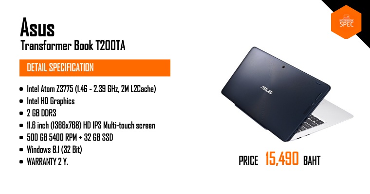 Asus Transformer Book T100HA กับโน๊ตบุ๊ค 2-in-1 ที่มาพร้อม USB Type-C เผยราคาแล้วNov 19, 2015 -