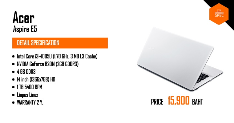 หมายเหตุ ข้อมูลที่แสดงในหน้านี้อาจไม่ครอบคลุมทุกส่วนที่มีภายในตัวเครื่อง ซึ่งทางเว็บไซต์สามารถทำการเปลี่ยนแปลงแก้ไขข้อมูลได้ โดยไม่ต้องแจ้งให้ทราบล่วงหน้า ผู้อ่านควรศึกษาข้อมูลเพิ่มเติมจากเว็บไซต์ผู้ผลิตสินค้า และควรสอบถามข้อมูลเพิ่มเติม จากผู้ขายสินค้า ณ จุดวางจำหน่ายทุกครั้ง เพื่อความถูกต้อง หากพบว่าข้อมูลรายละเอียดที่เราแสดงในหน้านี้มีความผิดพลาดหรือพบปัญหาในการแสดงผลของเว็บไซต์ โปรดแจ้งให้เราทราบได้ที่ feedback@notebookspec.com