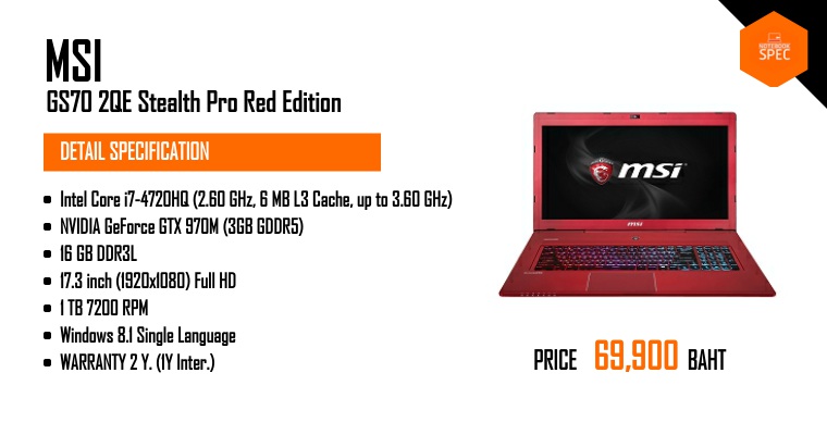 MSI GS70 2QE Stealth Pro Red Edition Review แดง แรง ถึงใจ !!!Feb 1, 2015