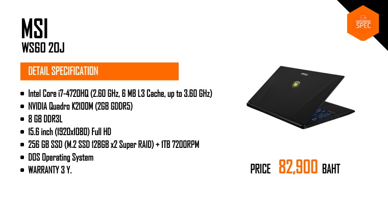 MSI WS60 Workstation Review โน๊ตบุ๊คทำงาน 3D สุดบางเบาMar 3, 2015 -