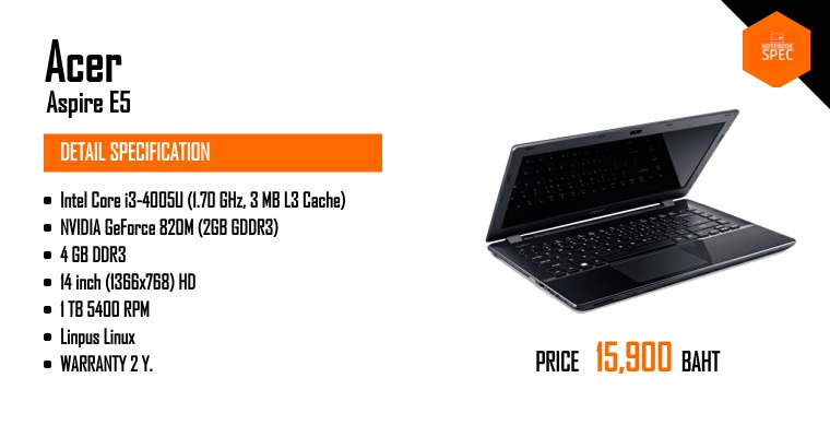 หมายเหตุ ข้อมูลที่แสดงในหน้านี้อาจไม่ครอบคลุมทุกส่วนที่มีภายในตัวเครื่อง ซึ่งทางเว็บไซต์สามารถทำการเปลี่ยนแปลงแก้ไขข้อมูลได้ โดยไม่ต้องแจ้งให้ทราบล่วงหน้า ผู้อ่านควรศึกษาข้อมูลเพิ่มเติมจากเว็บไซต์ผู้ผลิตสินค้า และควรสอบถามข้อมูลเพิ่มเติม จากผู้ขายสินค้า ณ จุดวางจำหน่ายทุกครั้ง เพื่อความถูกต้อง หากพบว่าข้อมูลรายละเอียดที่เราแสดงในหน้านี้มีความผิดพลาดหรือพบปัญหาในการแสดงผลของเว็บไซต์ โปรดแจ้งให้เราทราบได้ที่ feedback@notebookspec.com