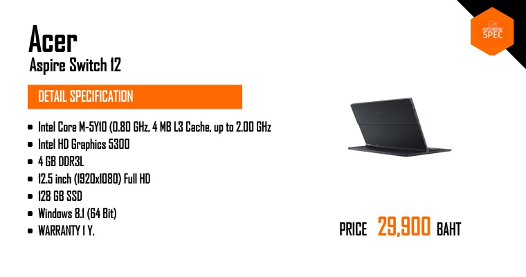 Acer Aspire Switch 11 ลด 10,000 บาท เหลือเพียง 19,900 บาทเท่านั้น ในงาน TME 2015Feb 12, 2015 -