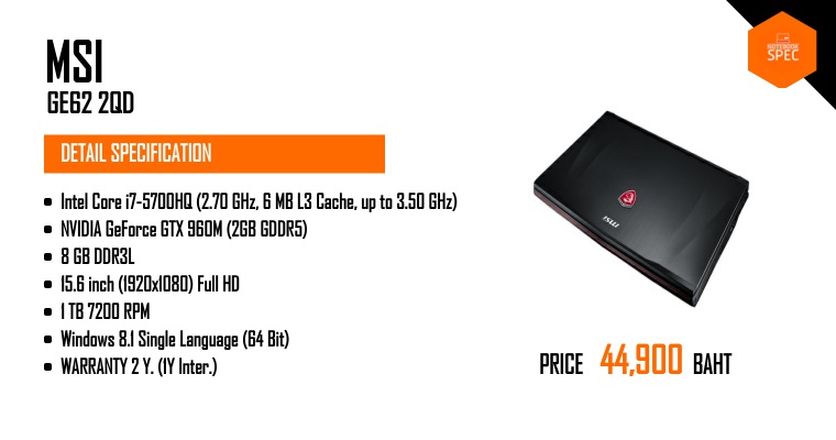 [Promotion] MSI GE62 6QD HOS Edition ปรับราคาท้าลมหนาว เหลือเพียง 33,900 บาท พร้อมของแถมมากมายNov 17, 2016