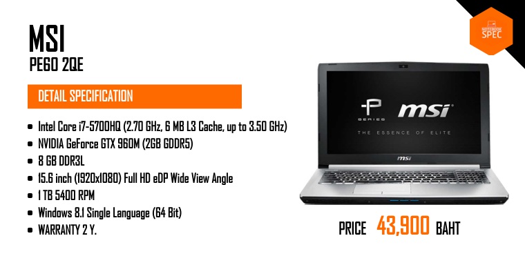 [MSI] โปรฯเด็ด GS70 ลดเหลือ 45,900 บาท - PE60 ลดเหลือ 31,900 บาท คุ้ม!!!Apr 20, 2016 -