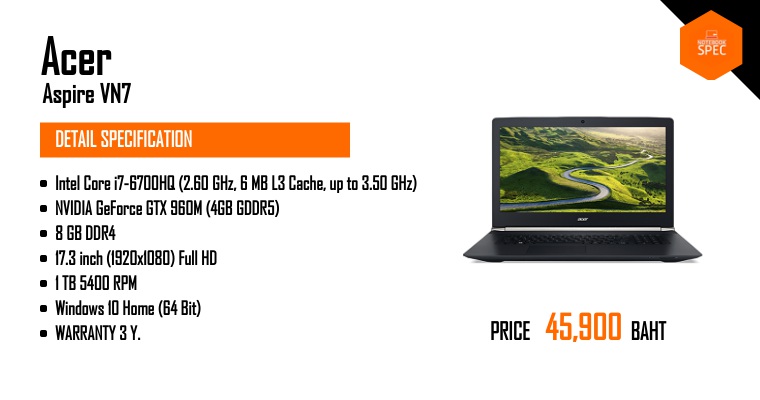 หมายเหตุ ข้อมูลที่แสดงในหน้านี้อาจไม่ครอบคลุมทุกส่วนที่มีภายในตัวเครื่อง ซึ่งทางเว็บไซต์สามารถทำการเปลี่ยนแปลงแก้ไขข้อมูลได้ โดยไม่ต้องแจ้งให้ทราบล่วงหน้า ผู้อ่านควรศึกษาข้อมูลเพิ่มเติมจากเว็บไซต์ผู้ผลิตสินค้า และควรสอบถามข้อมูลเพิ่มเติม จากผู้ขายสินค้า ณ จุดวางจำหน่ายทุกครั้ง เพื่อความถูกต้อง หากพบว่าข้อมูลรายละเอียดที่เราแสดงในหน้านี้มีความผิดพลาดหรือพบปัญหาในการแสดงผลของเว็บไซต์ โปรดแจ้งให้เราทราบได้ที่ feedback@notebookspec.com