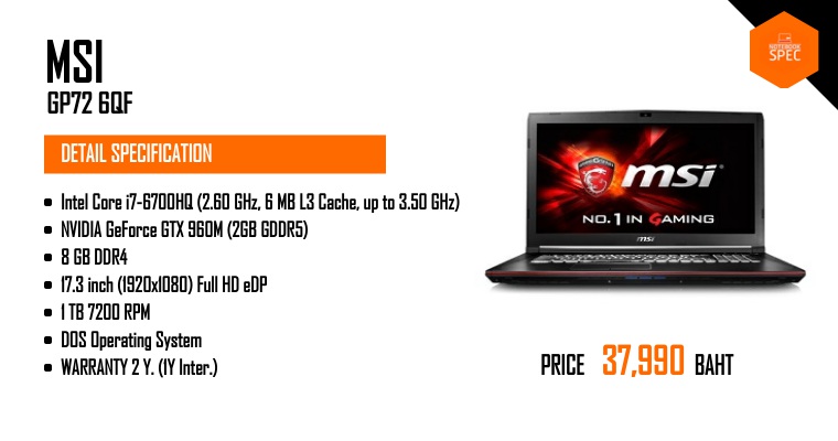 [Gaming Notebook] MSI GP72MVR Leopard Pro ลดราคาไปเลย 7,000 เหลือ 38,900 จากปกติ 45,900 บาทNov 19, 2017