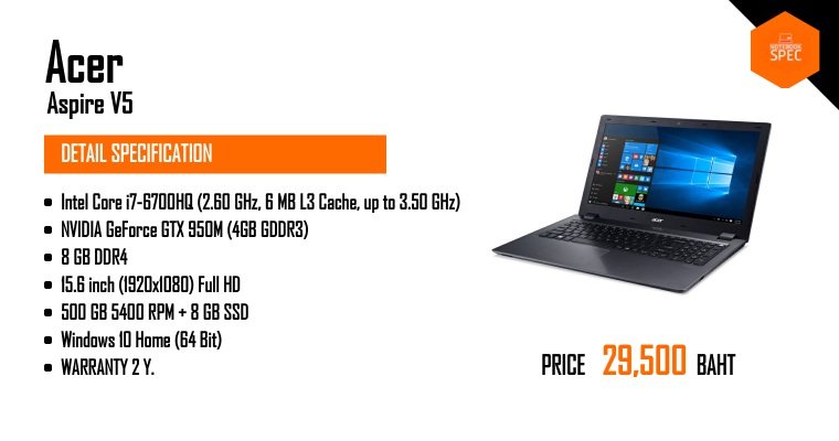 หมายเหตุ ข้อมูลที่แสดงในหน้านี้อาจไม่ครอบคลุมทุกส่วนที่มีภายในตัวเครื่อง ซึ่งทางเว็บไซต์สามารถทำการเปลี่ยนแปลงแก้ไขข้อมูลได้ โดยไม่ต้องแจ้งให้ทราบล่วงหน้า ผู้อ่านควรศึกษาข้อมูลเพิ่มเติมจากเว็บไซต์ผู้ผลิตสินค้า และควรสอบถามข้อมูลเพิ่มเติม จากผู้ขายสินค้า ณ จุดวางจำหน่ายทุกครั้ง เพื่อความถูกต้อง หากพบว่าข้อมูลรายละเอียดที่เราแสดงในหน้านี้มีความผิดพลาดหรือพบปัญหาในการแสดงผลของเว็บไซต์ โปรดแจ้งให้เราทราบได้ที่ feedback@notebookspec.com