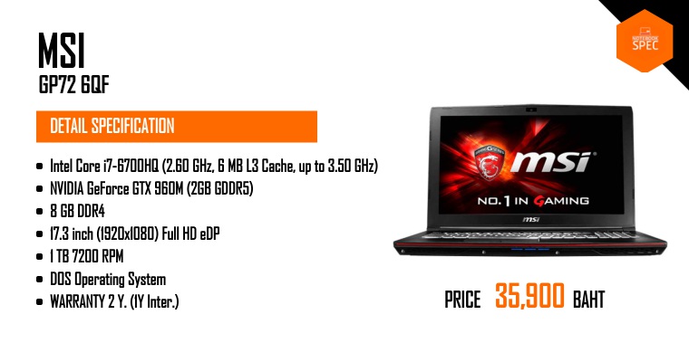 [Review] MSI GP72MVR 7RFX จอ 17.3 นิ้ว 120 Hz สุดฟิน สเปคไม่กั๊ก i7 + GTX 1060 (6GB) ราคา 45,900 บาทDec 3, 2017 -