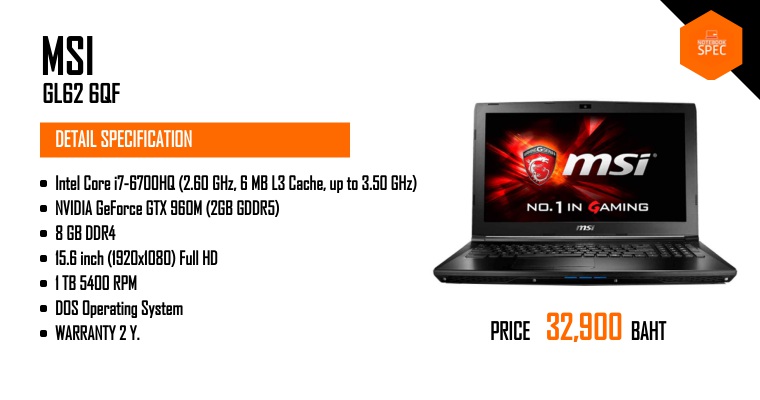[MSI Promotion] ชี้เป้า !!! ส่วนลดจัดเต็มกับโน๊ตบุ๊ค MSI GL62M การ์ดจอ GTX 1050/1050Ti เริ่มต้นเพียง 29,900 บาทJun 15, 2017 -