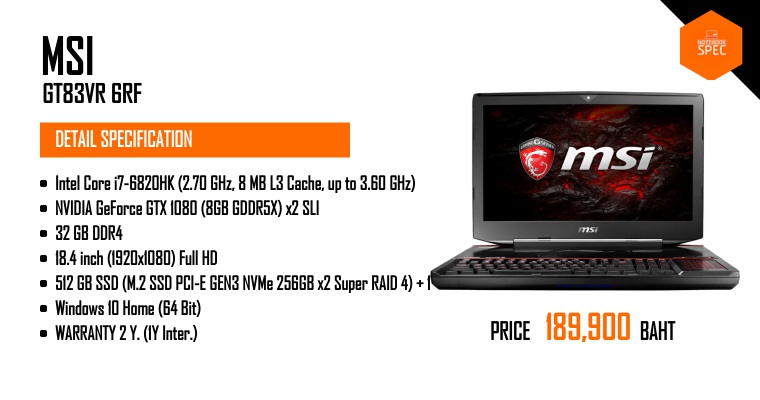 MSI GT83VR 7RF TITAN SLI โน้ตบุ๊ค Gen ใหม่ แรงที่สุดในโลก!!!! ราคาสองแสน!!!!Feb 4, 2017 -
