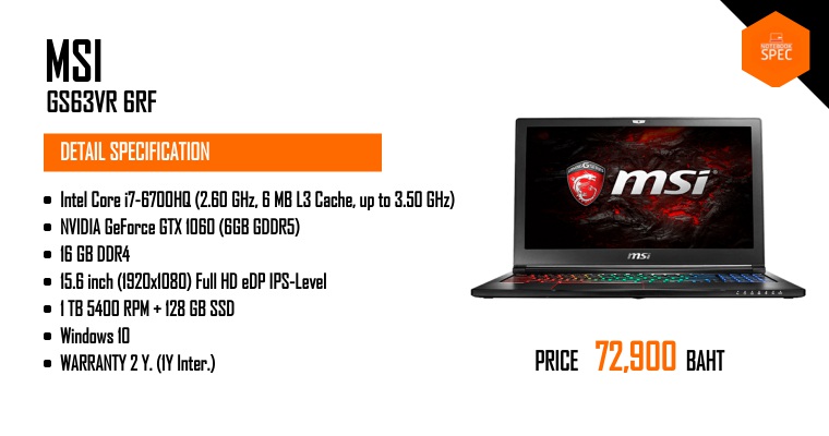 LIVE! สดๆ เล่นเกมบนแบตเตอรี่ กับโน้ตบุ๊ค GTX1060 (MSI GS63VR) ได้นานแค่ไหนOct 7, 2016 -