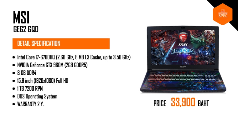 [Promotion] MSI GE62 6QD HOS Edition ปรับราคาท้าลมหนาว เหลือเพียง 33,900 บาท พร้อมของแถมมากมายNov 17, 2016