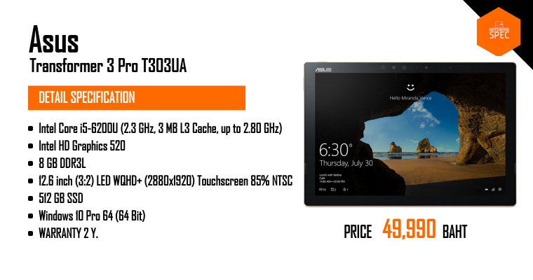 [Review] ASUS Transformer 3 Pro แรงดุจพีซีในรูปลักษณ์แบบแท็บเล็ต มาพร้อม Windows 10 อารมณ์ SurfaceDec 22, 2016 -