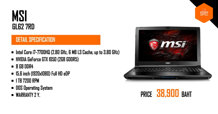 [Review] MSI GL62M 7RDX เกมมิ่งโน๊ตบุ๊คสเปก i7 + GTX 1050 ระบายความร้อนขั้นเทพ ราคา 33,900 บาทMay 28, 2017 -