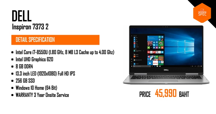 Review - Dell Inspiron 7373 บางเบา สวยเฉียบ ใช้งานหลากหลาย 2-in-1 Notebook สเปก Core i Gen 8Feb 14, 2018