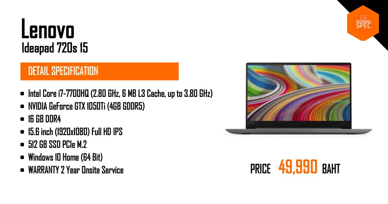 Lenovo - Ideapad 720s (15) เบาแค่ 1.9 โล สเปก i7-7700HQ + GTX 1050Ti + RAM 16GB + SSD 512GB + Windows 10Feb 4, 2018